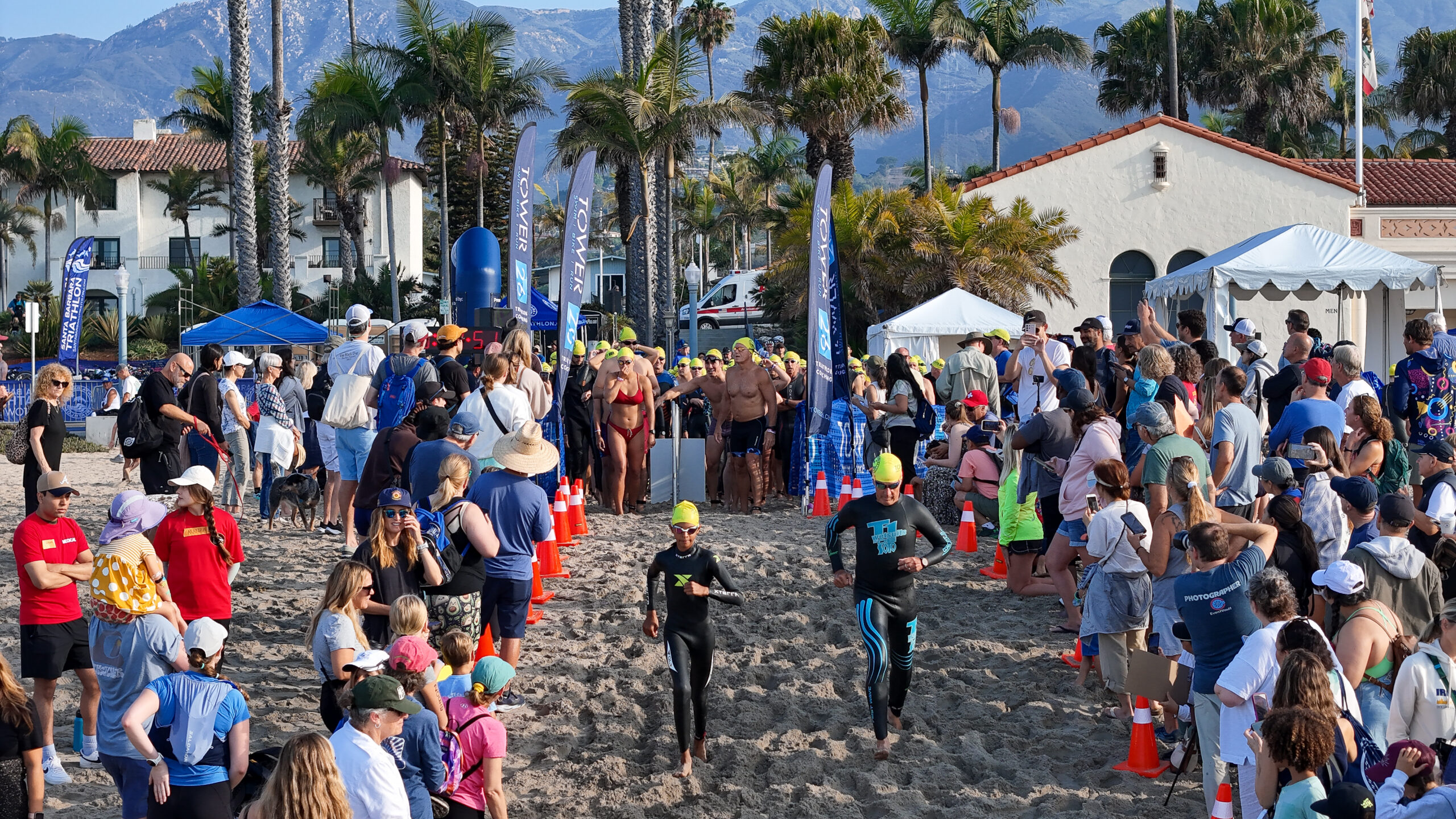 We are thrilled to offer this exclusive and unique family option. No matter what your speed, goals, or experience level, we welcome you. The calm ocean swim, relatively flat bike and run make for a perfect introduction to the sport of triathlon. The start line offers panoramic views of Santa Barbara’s famous “American Riviera,” the Channel Islands and the beautiful Stearns Wharf. Our swim takes place on the protected shores of East Beach. The short swim parallels the beach and finishes adjacent to the transition area. The bike route follows the coastline roads toward Butterfly Beach and past the famous Four Seasons Biltmore. The run course cruises the beachfront bike path and is out-and-back and fast-and-flat! Typically you’re even rewarded by a tail wind pushing you to the finish line. Music, refreshments, food and friends await your return.